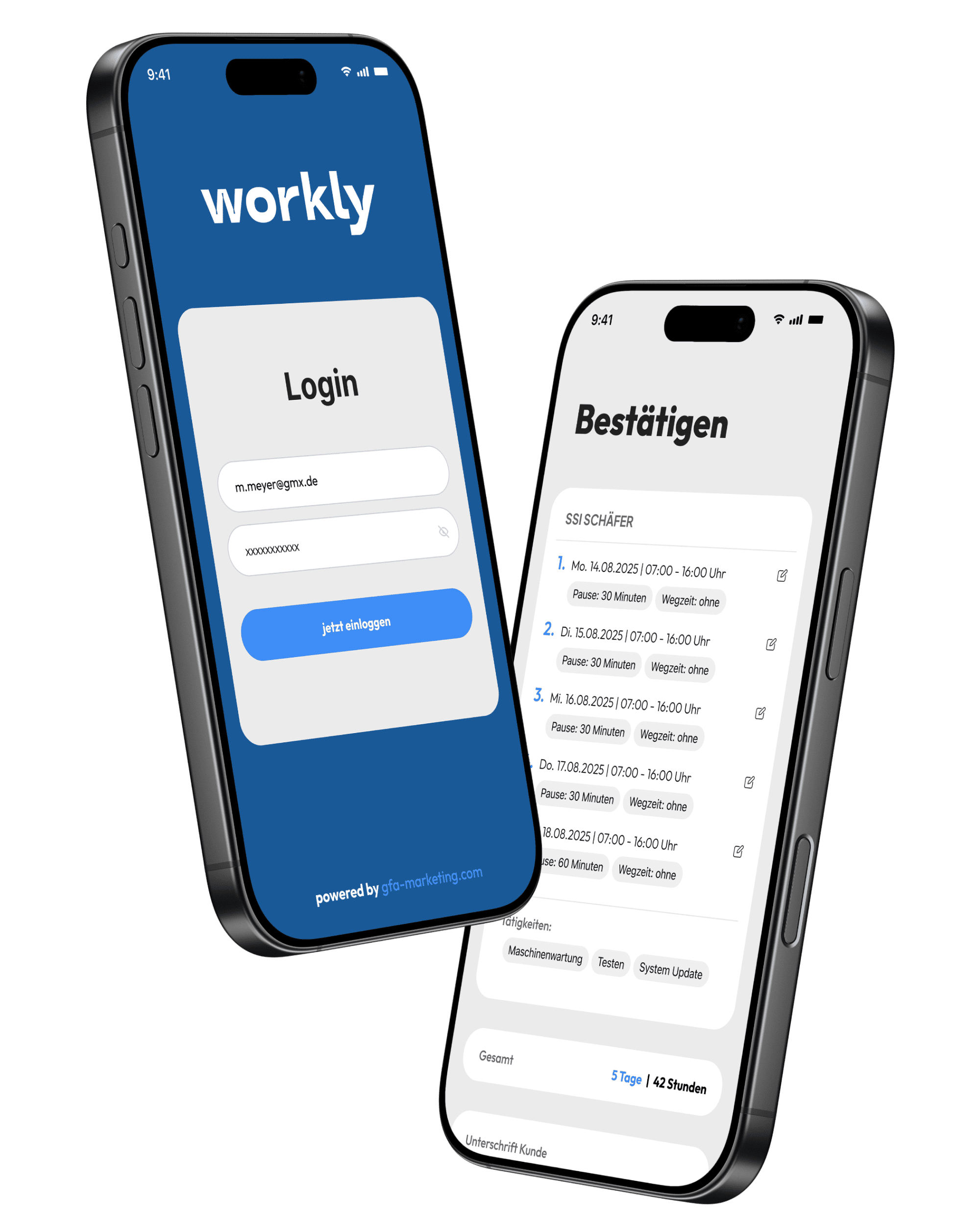 Schluss mit unübersichtlichen Zetteln und doppelten Einträgen. Workly bringt Zeiten, Tätigkeiten und Unterschriften digital zusammen – direkt ins zentrale Dashboard Ihres Unternehmens.